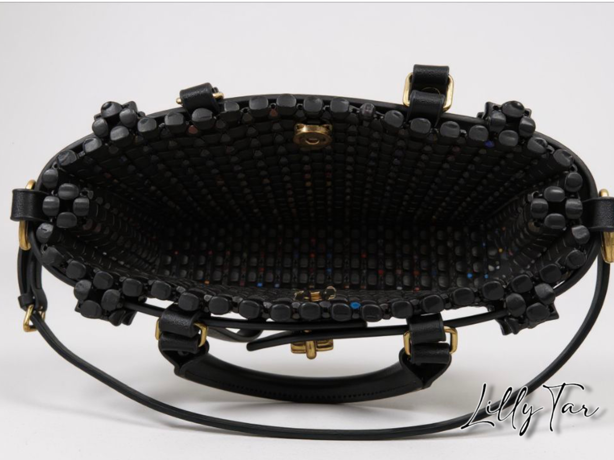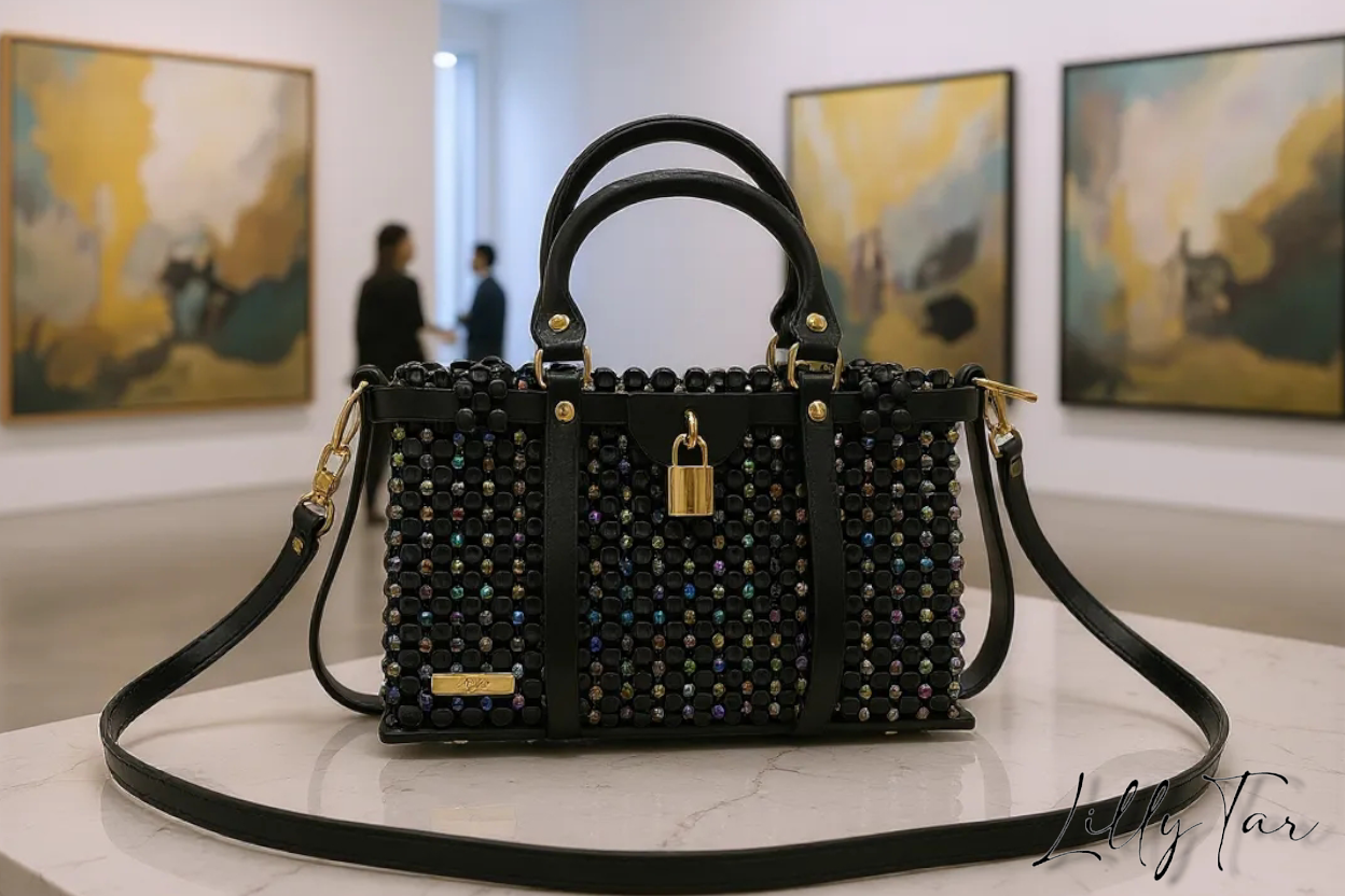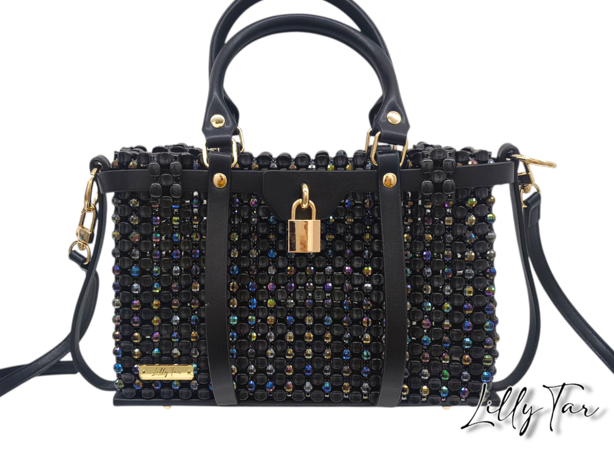 Dai un tocco di magia al tuo guardaroba con questa borsa unica, un vero capolavoro di artigianalità. L’esterno in similpelle si unisce alla preziosità delle perline Tooth e Boreali, creando una trama scintillante che non passerà inosservata. I dettagli in metallo dorato e l’estetica del lucchetto la rendono un accessorio di tendenza, ideale per aggiungere un tocco di glamour a ogni tuo look. Porta con te un pezzo di pura arte: eleganza, luce e stile inconfondibile.