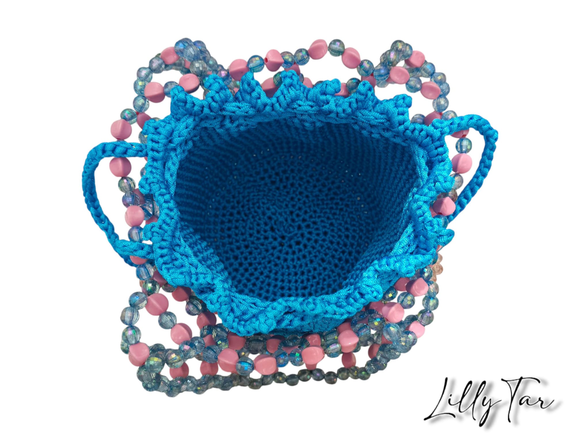 “Afrodite” è realizzata con una combinazione di perline Tooth e sfaccettate, che donano un aspetto unico e scintillante. La superfice della borsa è caratterizzata da un design elaborato, dove le perline sono abilmente disposte per creare un effetto visivo affascinante. All’interno, la borsa è foderata con un resistente cestino in cordino, che non solo offre una buona struttura, ma aggiunge anche un tocco di rusticità al design complessivo. I manici, anch’essi decorati con perline, garantiscono comfort e stile a chi la indossa. Questa borsa è perfetta per chi cerca di unire praticità e moda in un accessorio distintivo.