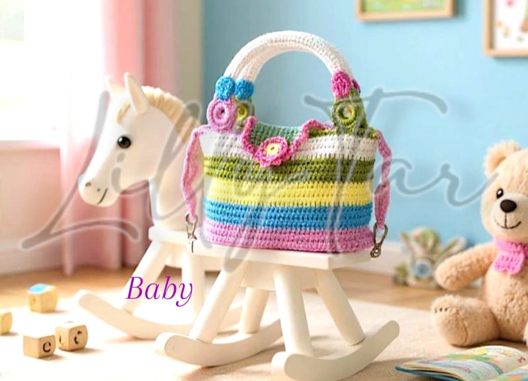 Un abbraccio di fiaba per le piccole principesse! Questa borsa, tessuta a mano con morbido cotone fiocco, è un’esplosione di colori pastello. I dettagli floreali e il design giocoso la rendono l’accessorio perfetto per le avventure quotidiane della tua bambina. Leggera e resistente, è il regalo ideale per farla sentire speciale e alla moda.