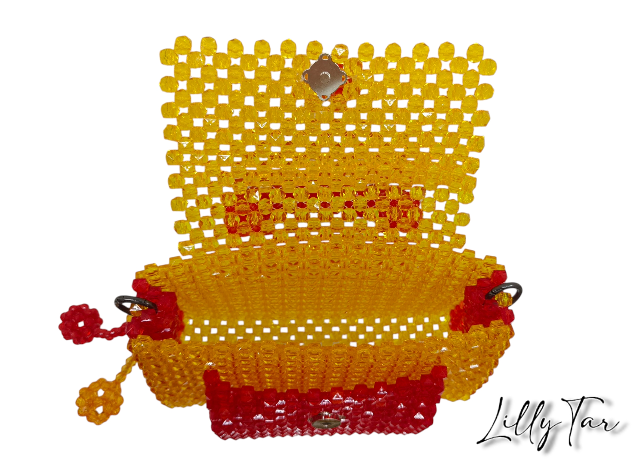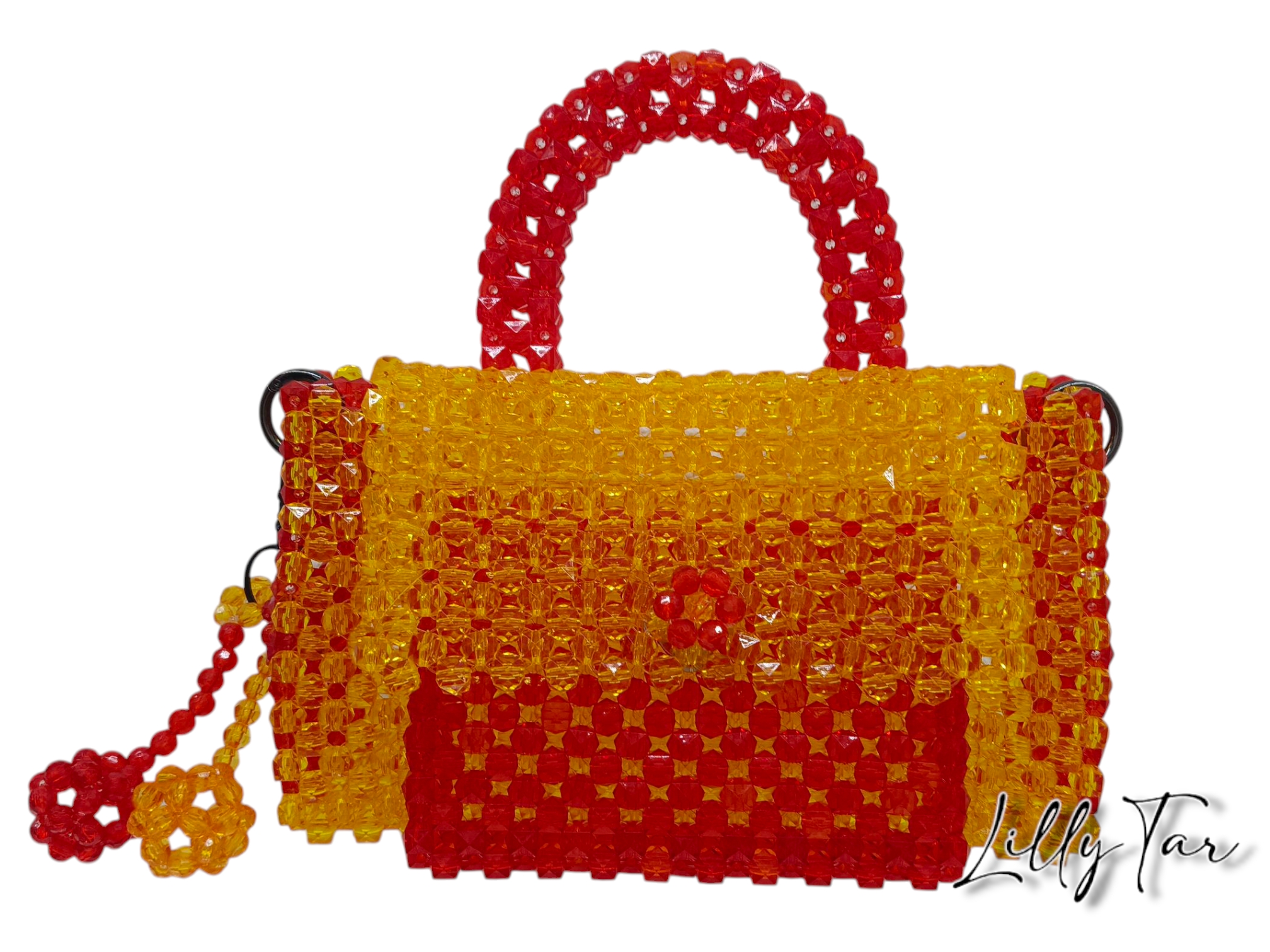 Scopri l’eleganza artigianale con la nostra borsa “Corallo”: perline acriliche quadrate dai vibranti toni rosso e arancio, arricchite da una pratica tasca frontale. Un accessorio unico, perfetto per dare un tocco di colore e stile a ogni tuo outfit!