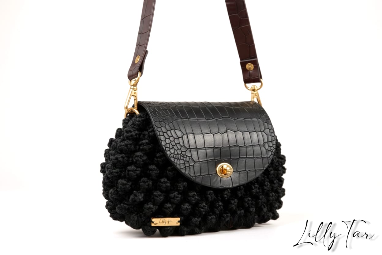 Scopri l’eleganza artigianale con la nostra borsa fatta a mano all’uncinetto, realizzata con fettuccia di alta qualità e dettagli in eco pelle effetto coccodrillo. Ogni pezzo è unico, grazie alla lavorazione a mano che dona un design originale e un tocco di stile sofisticato. Il mix perfetto tra la morbidezza della fettuccia intrecciata e la raffinatezza dell’eco pelle rende questa borsa versatile e resistente, ideale per completare ogni outfit, dal casual al più elegante. Il pratico tracolla regolabile e la chiusura con fibbia dorata aggiungono funzionalità senza rinunciare al glamour. Scegli la sostenibilità senza rinunciare al fascino: porta con te un accessorio esclusivo, realizzato con cura e passione.