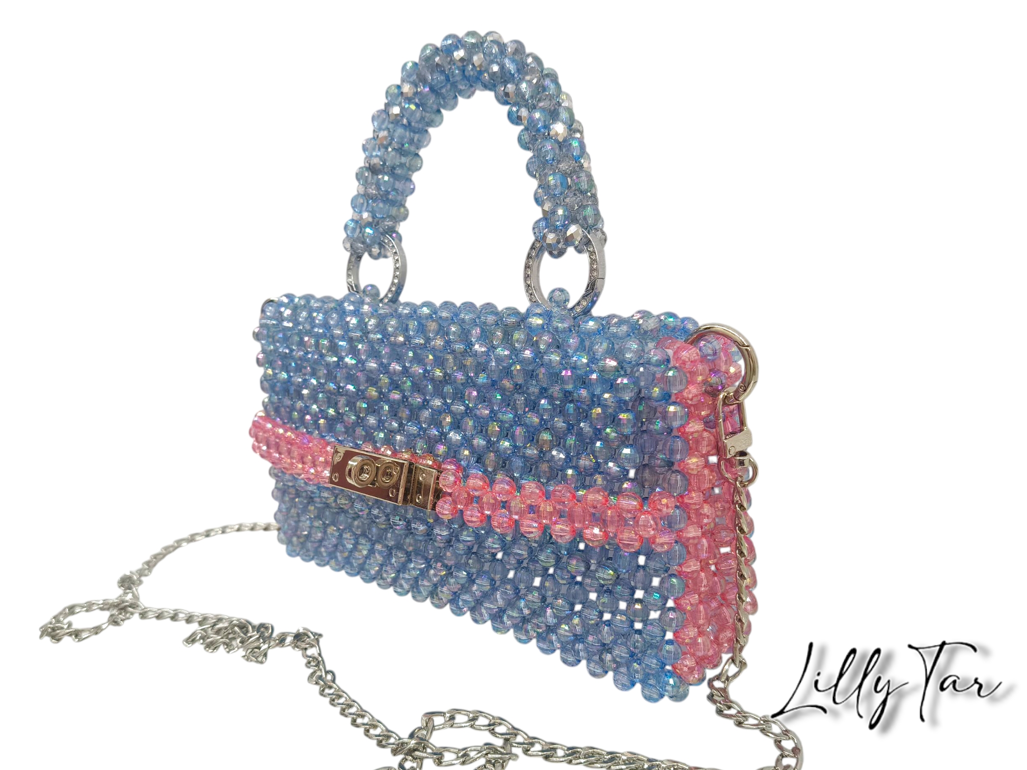 Illumina il tuo stile con questa borsa artigianale, un vero gioiello realizzato con perline acriliche sfaccettate che catturano la luce ad ogni movimento, creando un gioco di riflessi abbagliante. I vivaci laterali in perline rosa aggiungono un tocco di dolcezza e un contrasto cromatico irresistibile. Porta con te un’esplosione di luce e colore: la tua nuova borsa ti aspetta!