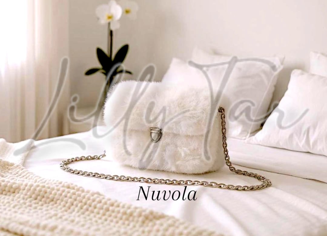 Abbraccia la morbidezza con stile: questa borsa è un sogno di leggerezza, creata su una rete e avvolta da una soffice lana ecopelliccia. Un accessorio etereo e chic, ideale per aggiungere un tocco di lusso discreto al tuo look. Porta con te un soffio di eleganza!