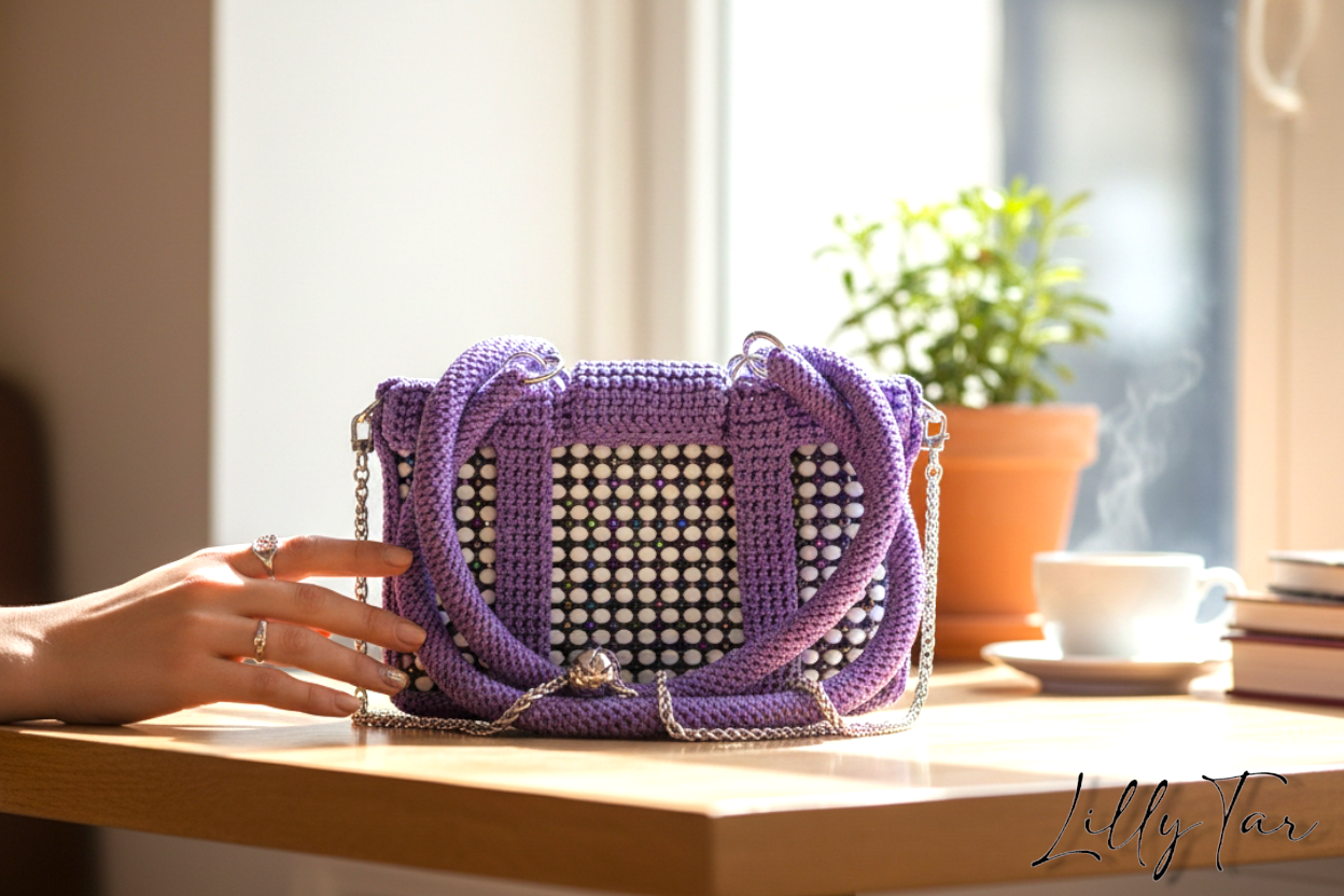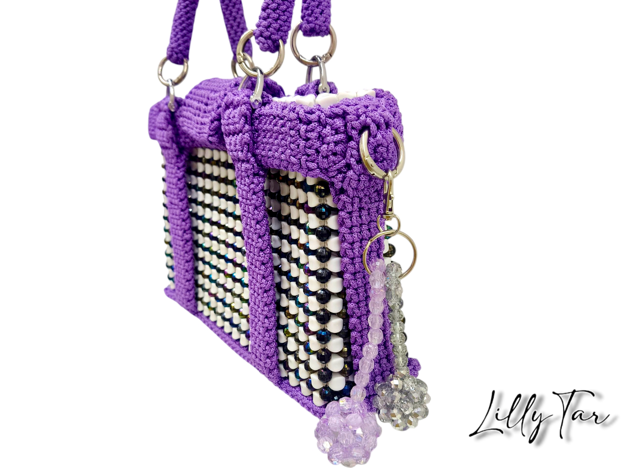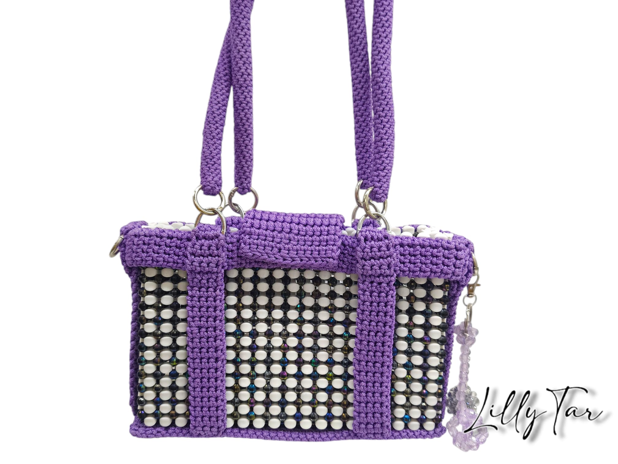Fatti incantare dalla magia di questa borsa artigianale, un vero spettacolo di luci e texture. Le perline Tooth alternate a perline boreali creano un effetto cangiante ipnotico, mentre le rifiniture e i manici in cordino Thai aggiungono un tocco esotico e un ‘artigianalità unica. Porta con te un sogno boreale, intrecciato con maestria !