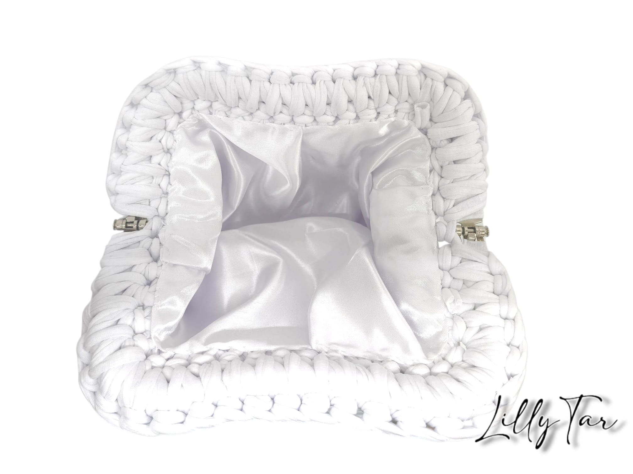 Lasciati conquistare dalla texture avvolgente e dal design distintivo di questa clutch realizzata a mano in pregiata fettuccia. Il suo stile contemporaneo la rende l’accessorio perfetto per elevare ogni tuo outfit, conferendo un tocco di ricercata originalità. Questa borsa è l’emblema dell’eleganza artigianale, ideale per accompagnarti con stile in ogni occasione, dal tramonto all’alba.